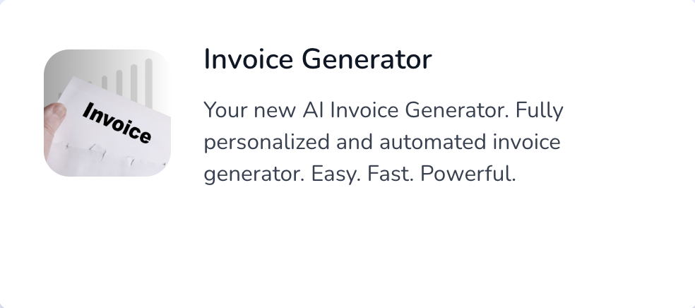 Invoice Generator: Your new AI Invoice Generator. Fully personalized and automated invoice generator. Easy. Fast. Powerful.