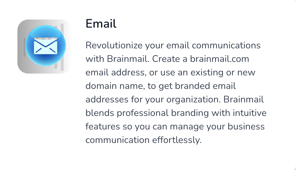 Email: Revolutionize your email communications with Brainmail. Create a brainmail.com email address, or use an existing or new domain name, to get branded email addresses for your organization. Brainmail blends professional branding with intuitive features so you can manage your business communication effortlessly.